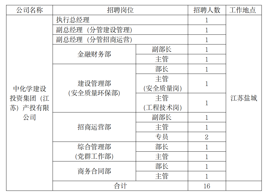 中化學(xué)建設(shè)投資集團(tuán)(江蘇)產(chǎn)投有限公司 公開(kāi)招聘公告